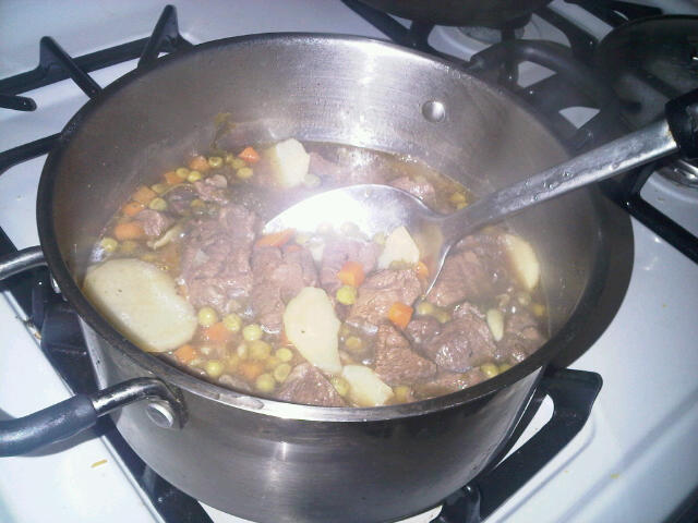 So, A is in the kitchen…making me stew. It’s been close to an hour, I’m almost faint with anticipation and it smells delicious.